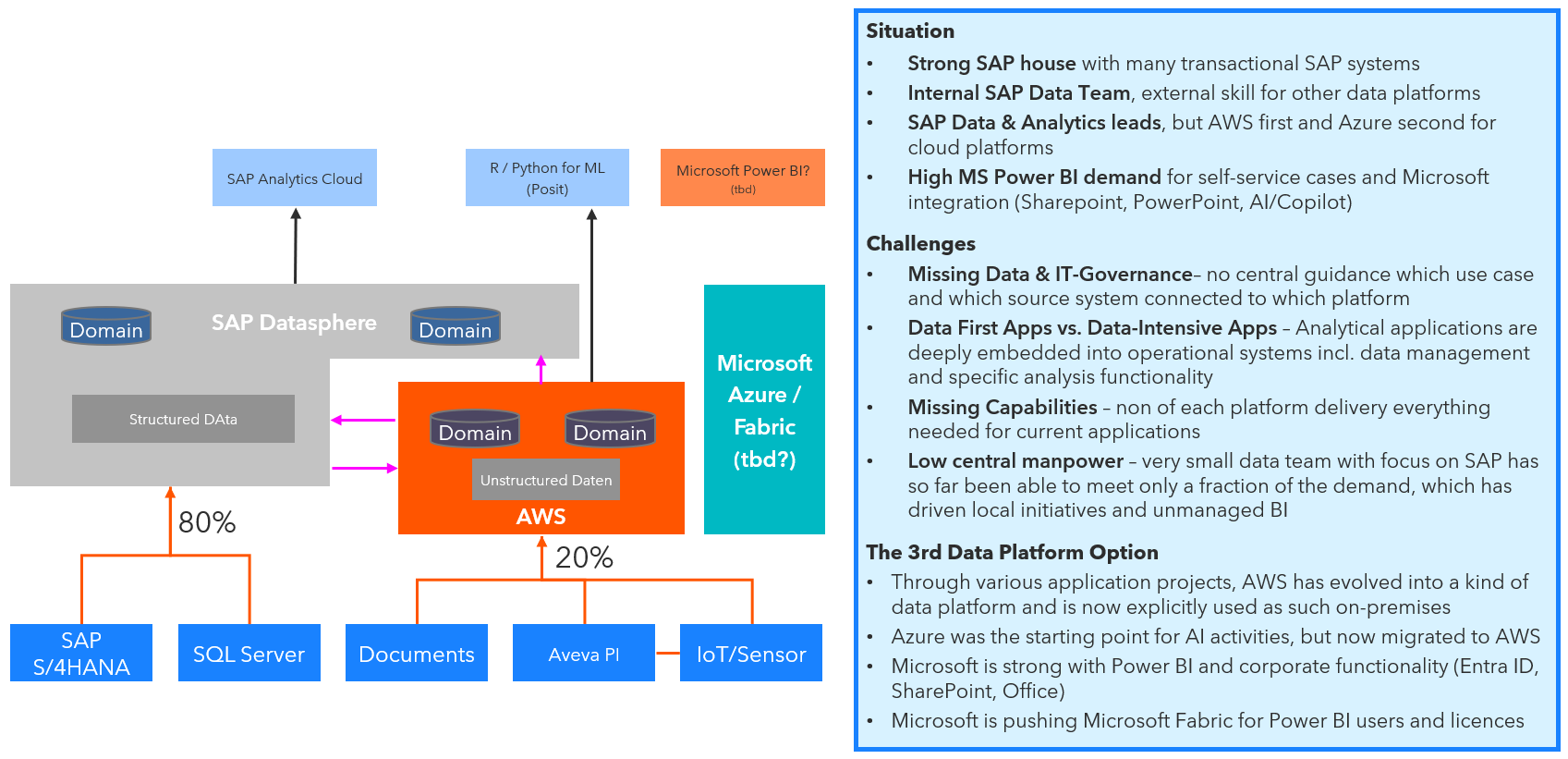 The following approach was already discussed at a former state here. Now several aspects are still discussed. The focus today is on the question should a 3rd technology - Microsoft Azure / Fabric - added to the holistic data platform approach.
