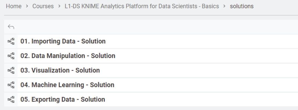 L1-DS is the first course (Level 1) for the Data Science (DS) training. KNIME offers exercises with data and also solutions to get a better understanding of best practice in workflow modeling. Training slides can be found here. There are the following 5 exercises: