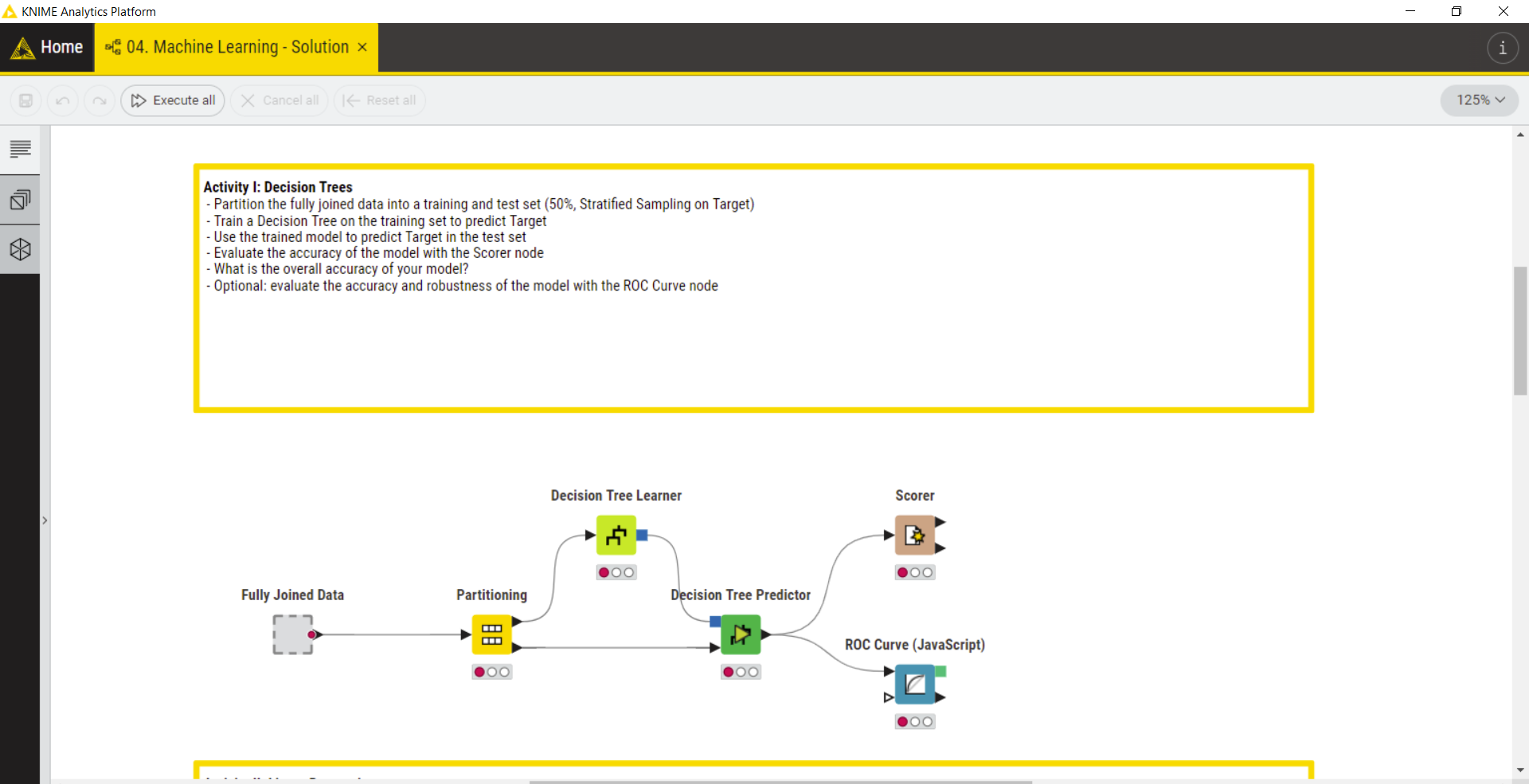 The first workflow includes Decision Tree algorithm. Decision trees are supervised ML algorithms. This means you need example data with a label to learn from.