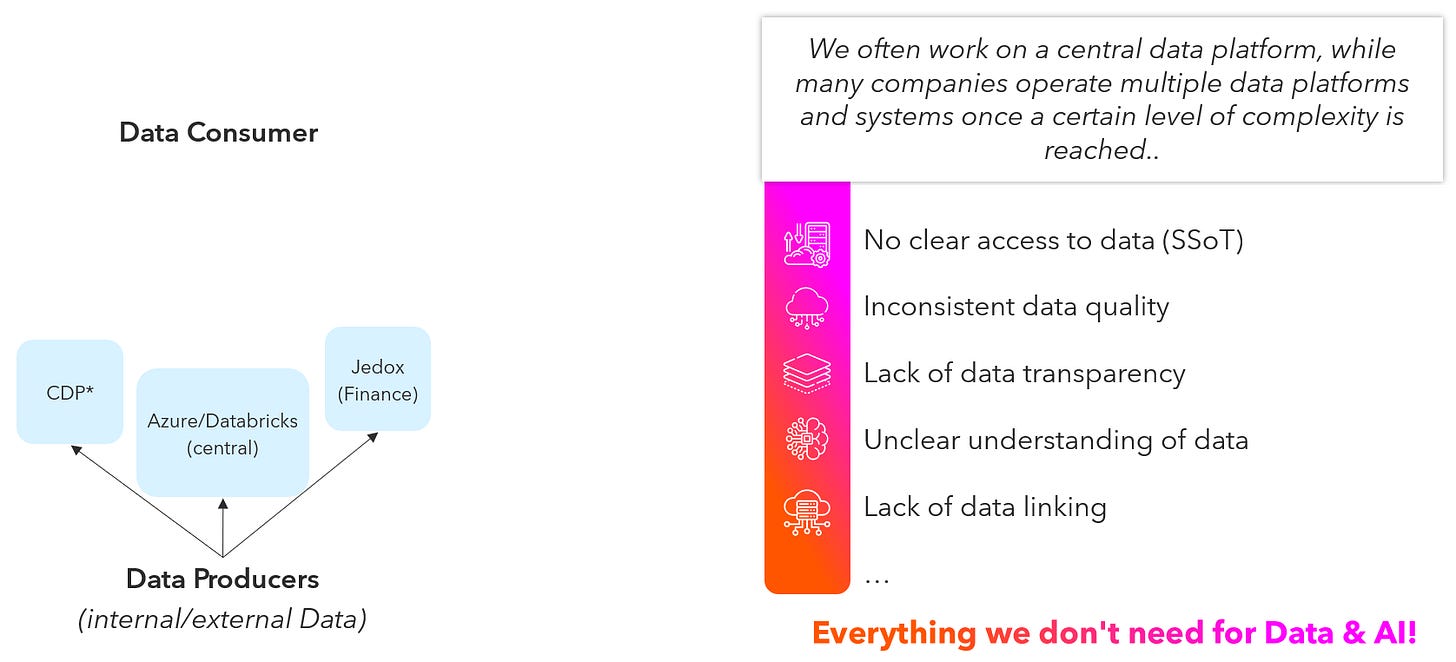 My customer come from a rather decentralized approach and is on the way to establish Data Mesh as a socio-technical data architecture.