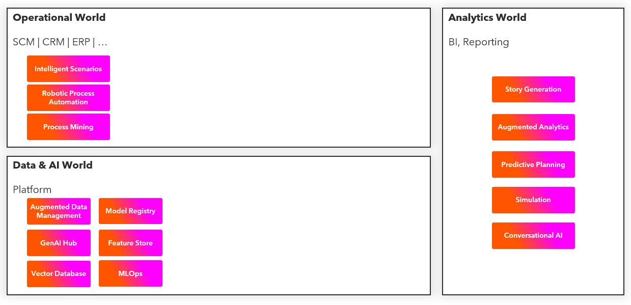 There are specific capabilities in each of these worlds that support AI in their respective context.