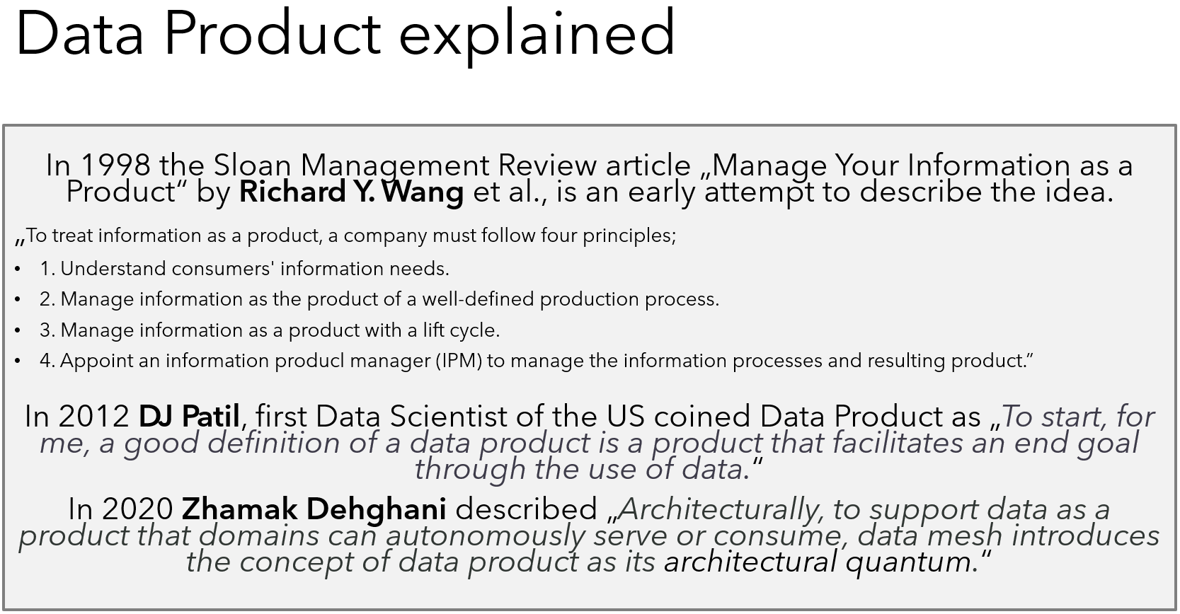 As for sure Data Product is a core element of building a Data Mesh, there are some further initiatives für a Data Product specification.