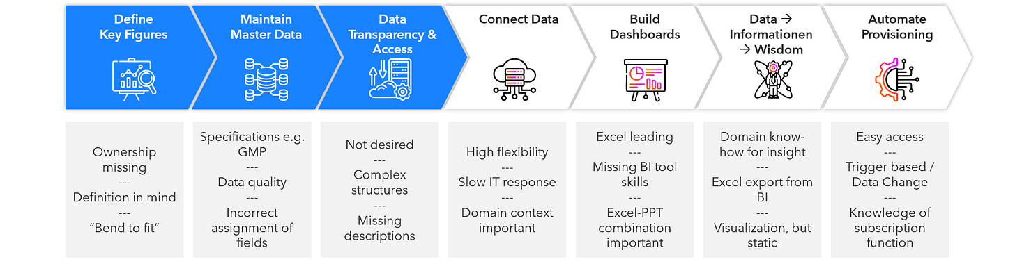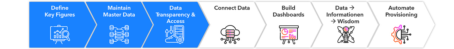 🔢 We have to be aware that like in the following image, Self-Service is often more than building a Dashboard or compiling numbers in a spreadsheet. To understand the end-to-end process helps to tackle challenges and support data usage.
