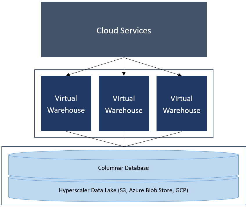 Based on a shared-disk approach you got the flexibility through separation of compute and storage, you would expect from modern Cloud Data Warehouses. Additionally the compute represented by the Virtual Warehouses are massively parallel processing (MPP) compute engines with a shared-nothing approach. Snowflake calls this also EPP - Elastic Parallel Processing.